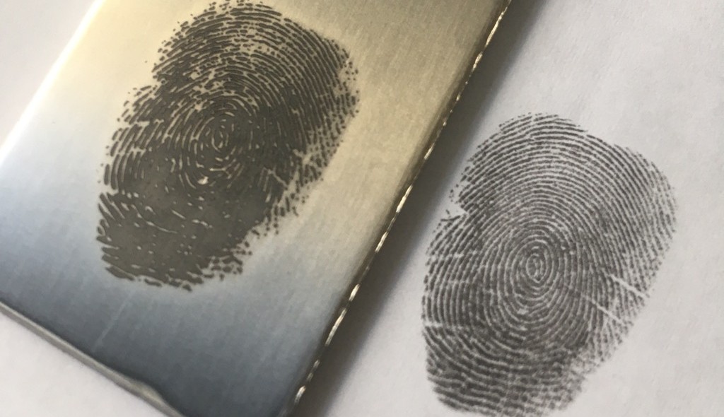 指紋画像からレーザー彫刻した事例(写真は開発段階のものです)