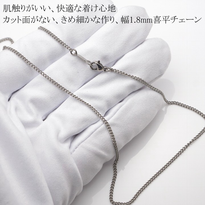 幅1.8mm喜平タイプ55cm長さでの着用例(モデル身長165cm、首周り36.5cm)ネックレスはオプション