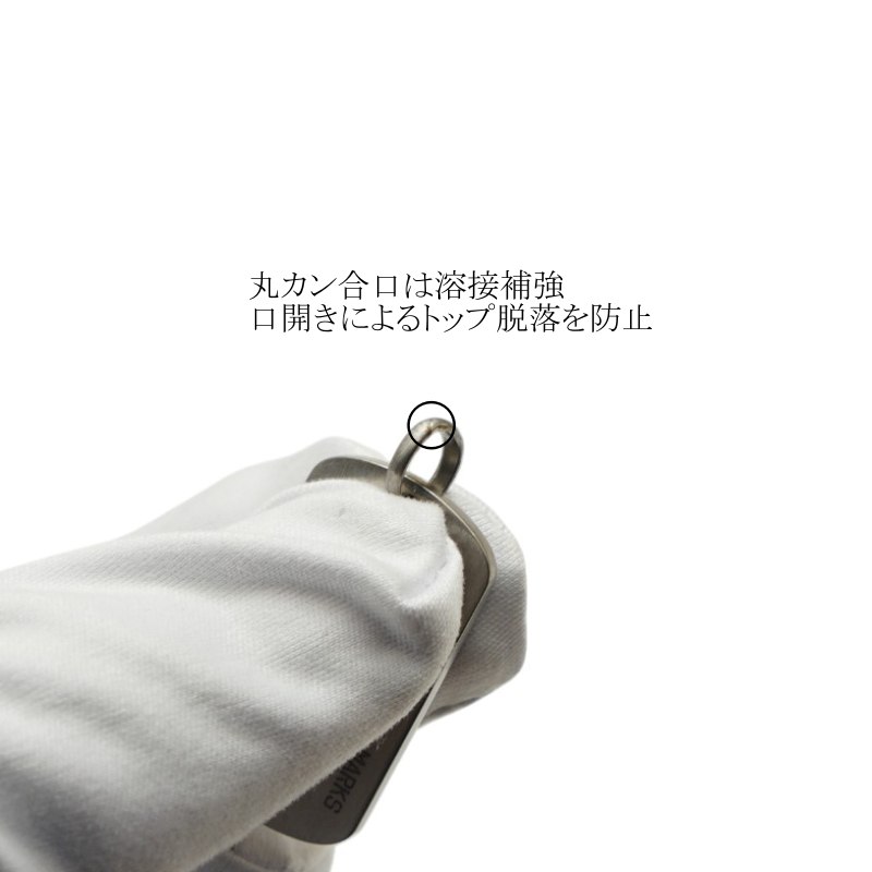 丸カン合口部は溶接処理、タグの脱落を100%防止します。