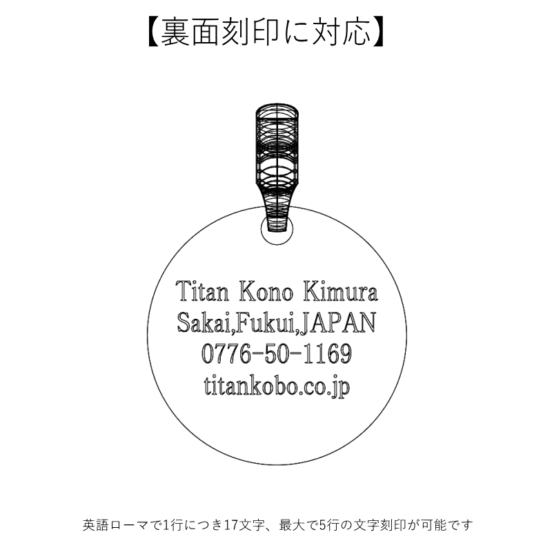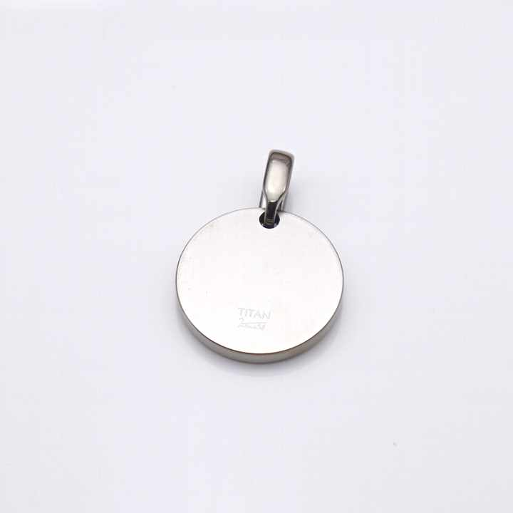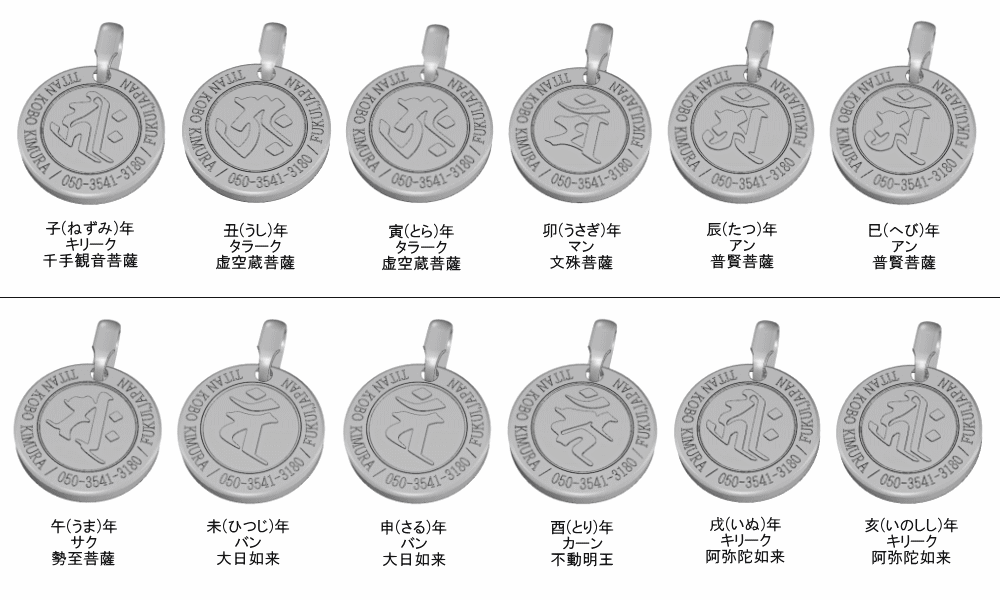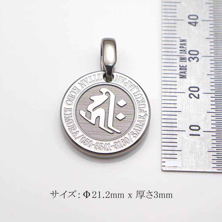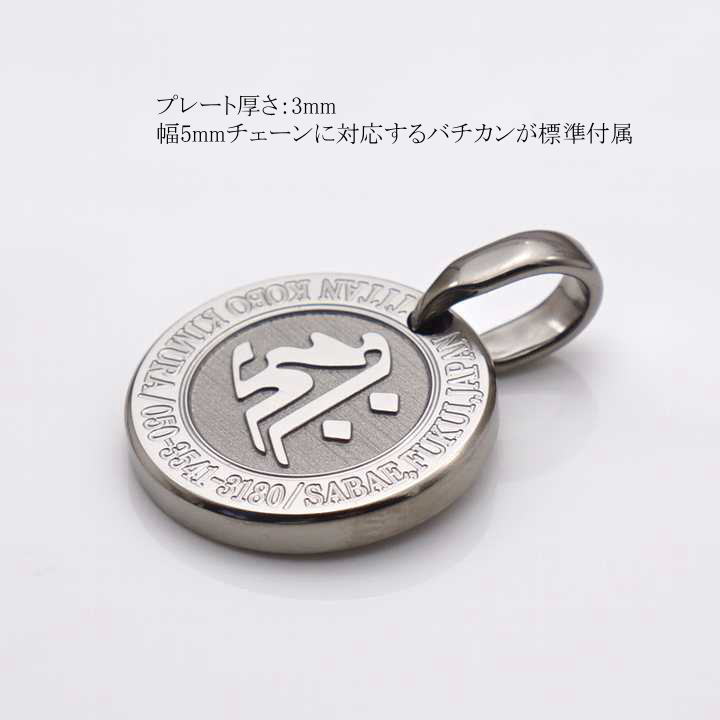 【裏面刻印(英語ローマ時)有り仕様】丸いチタンドッグタグ/梵字守護尊/B360X/Φ21.2mm/ネックレス含まず
