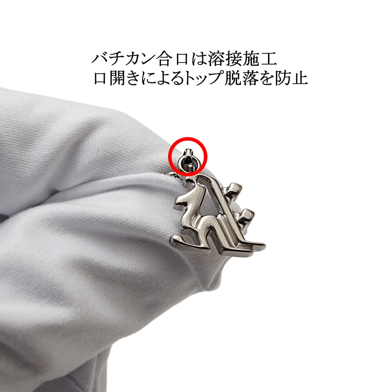 ペンダントを取り付けるバチカン、丸カン合口部は信頼の溶接施工