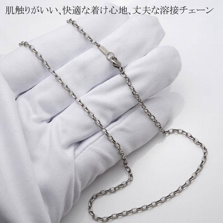 チェーン部の合口はすべて溶接処理されています。少々引っ張っても切れることはありません。スポーツ、激しい運動時の着用にも適しています。