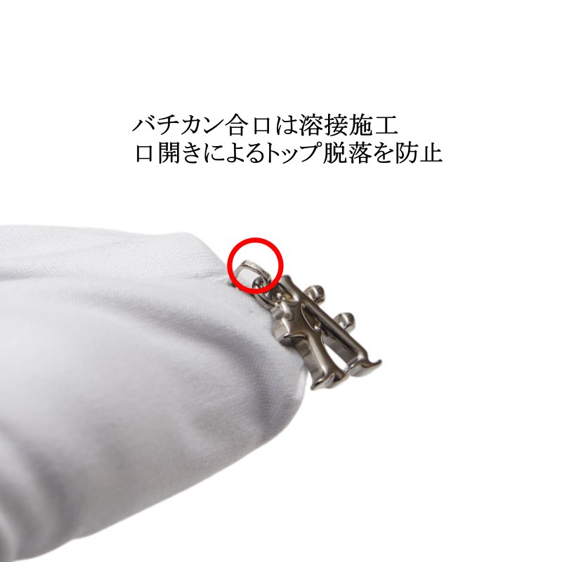 チェーンを通すバチカンも純チタン製、合口は溶接口閉じ、口開きによる不意のトップ脱落を防止