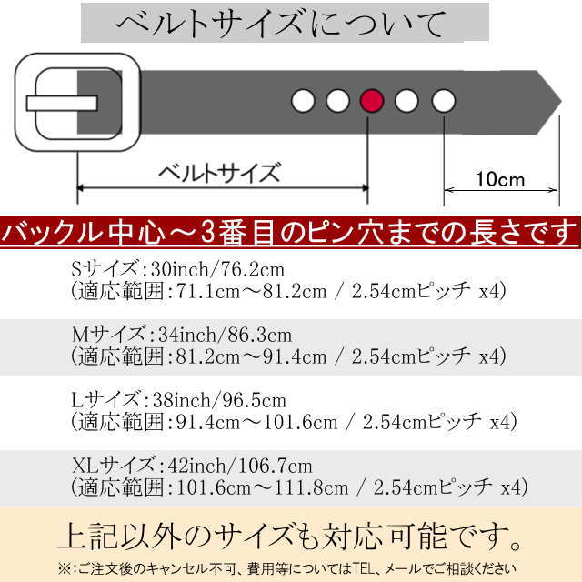 Lサイズ:38inch/96.5cm (適応範囲:91.4cm~101.6cm / 2.54cmピッチ x4)