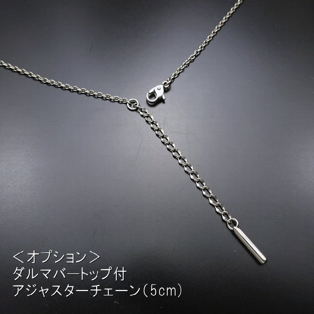 装いに合わせて、チェーン長さを変更できるアジャスターチェーンの取り付けも可能です。アジャスターチェーン長さは5cmです。