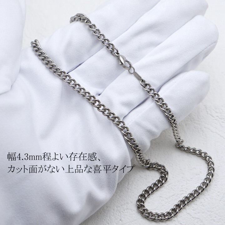 4.3mm喜平55cm長さでの着用例(モデル身長165cm、首周り36.5cm)