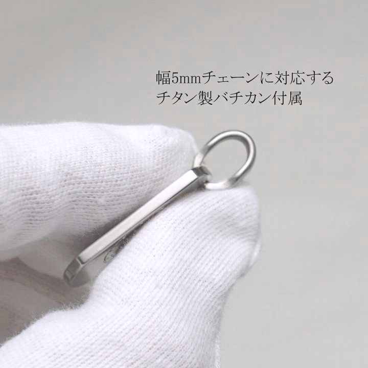 ペンダントを取り付けるバチカン、丸カンもチタン製。合口部は信頼の溶接施工