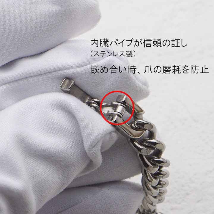 留め具もチタン製、日常での着用を考え、信頼性重視の作り込みを徹底しています。