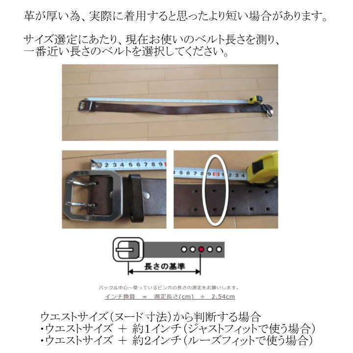 現在お使いのベルト長さを測り、一番近い長さのベルトを選択して下さい。