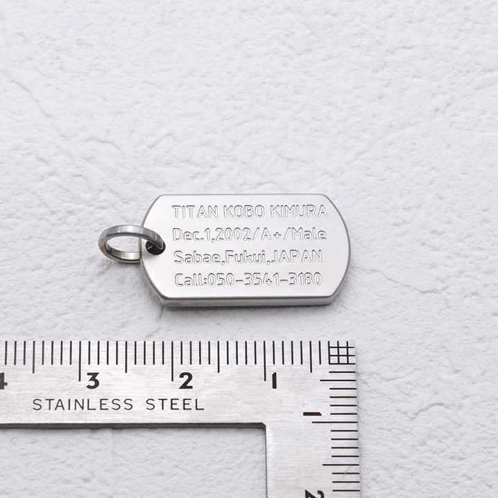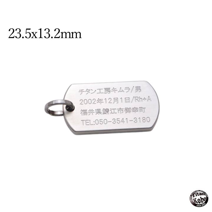 23.5x13.2mm、男女兼用、小さめIDタグ。肌に優しいチタン製